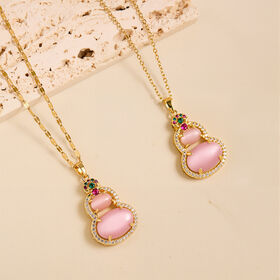 • Delicate gold-tone necklace with a soft pink clover pendant.